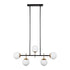 Art Deco forms are reimagined with a modern minimalist sensibility in the Maddox collection. Opal glass spheres have been symmetrically placed across a black frame, with Antique brass accents adding perfect polish and contrast.