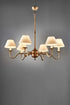 Our Prescot lamp is traditional 6 arm chandelier in solid brass with three available antique finishes: brass, silver and bronze. The light is suspended on three metal rods and can be adjusted for height by removing rods as necessary when fitting.